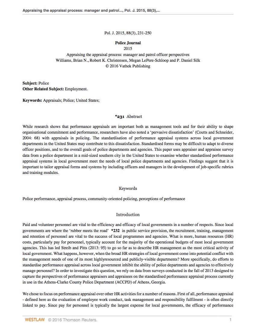 In this study, we explore whether sector distinguishes what we know about performance appraisals. We were particularly interested in two important aspects of the appraisal process: evaluation of inrole/task and extrarole/citizenship behaviors. We utilized a mixed experimental design with three within-subjects factors (task behavior and two types of extrarole behavior), each manipulated at two levels (high and low performance), and a between-subjects factor measuring sector of the respondent (private and public/nonprofit). We find that sector does matter in a common managerial task like performance appraisals. Public sector managers placed greater weight on task behaviors in making their appraisals than did private sector managers. Results regarding sector and extrarole behaviors were mix..