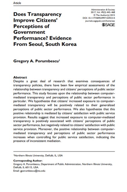 Does transparency improve citizens’ perceptions of government performance? Evidence from Seoul, South Kore